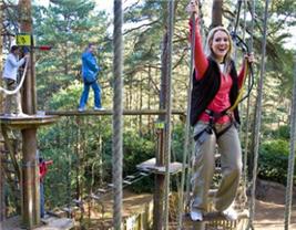 Everything to do with heights, high rope walks zip wires, great fun up in the trees. The zip wires are fantastic fun and tarzan swings are unbeatable. There is full instruction and the whole tree top adventure is an action pacek 2-3 hour experience.